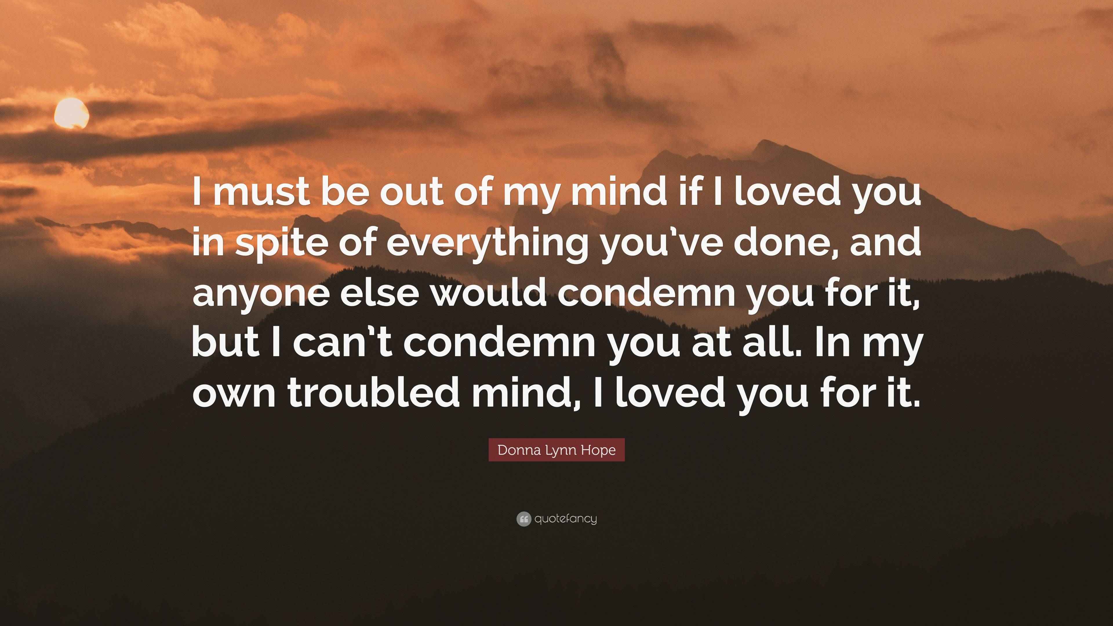 Donna Lynn Hope Quote: “I must be out of my mind if I loved you in