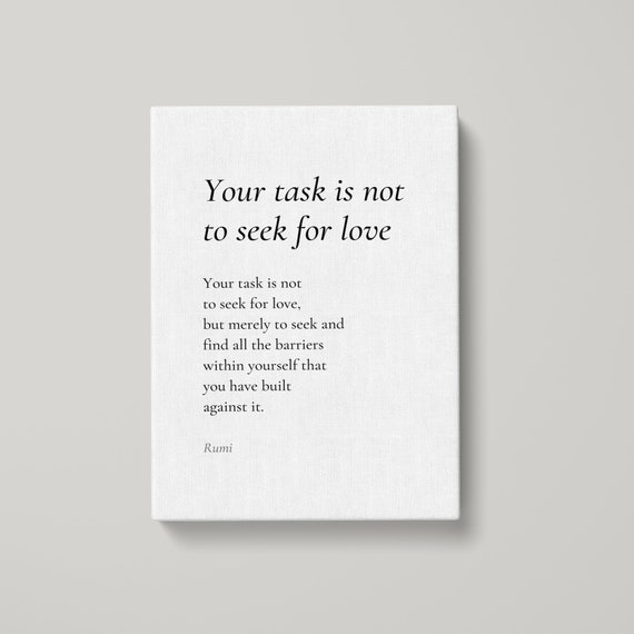 Your Task is Not to Seek by Rumi Poem Canvas Print Poetry Print